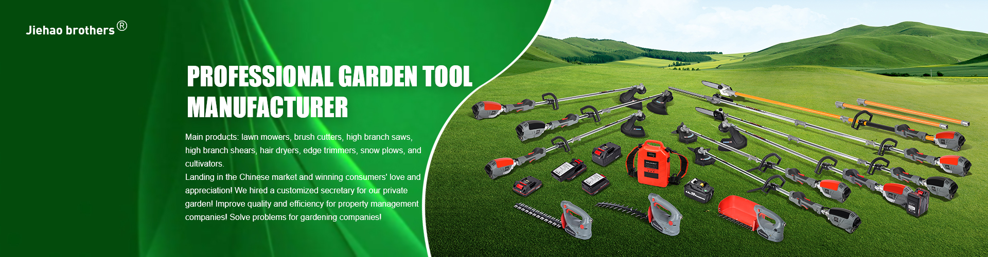 Dongguan Jiehao Machinery Co., Ltd. has a strong product portfolio, with manufacturing and product development footprints located in Dongguan, China and Pingyang, Vietnam The company continues to expand its branches in various provinces and multiple countries in China Sales channels are committed to designing, developing, manufacturing, and selling various types of advanced, high-performance, and high-quality environmentally friendly rechargeable industrial tools and equipment.